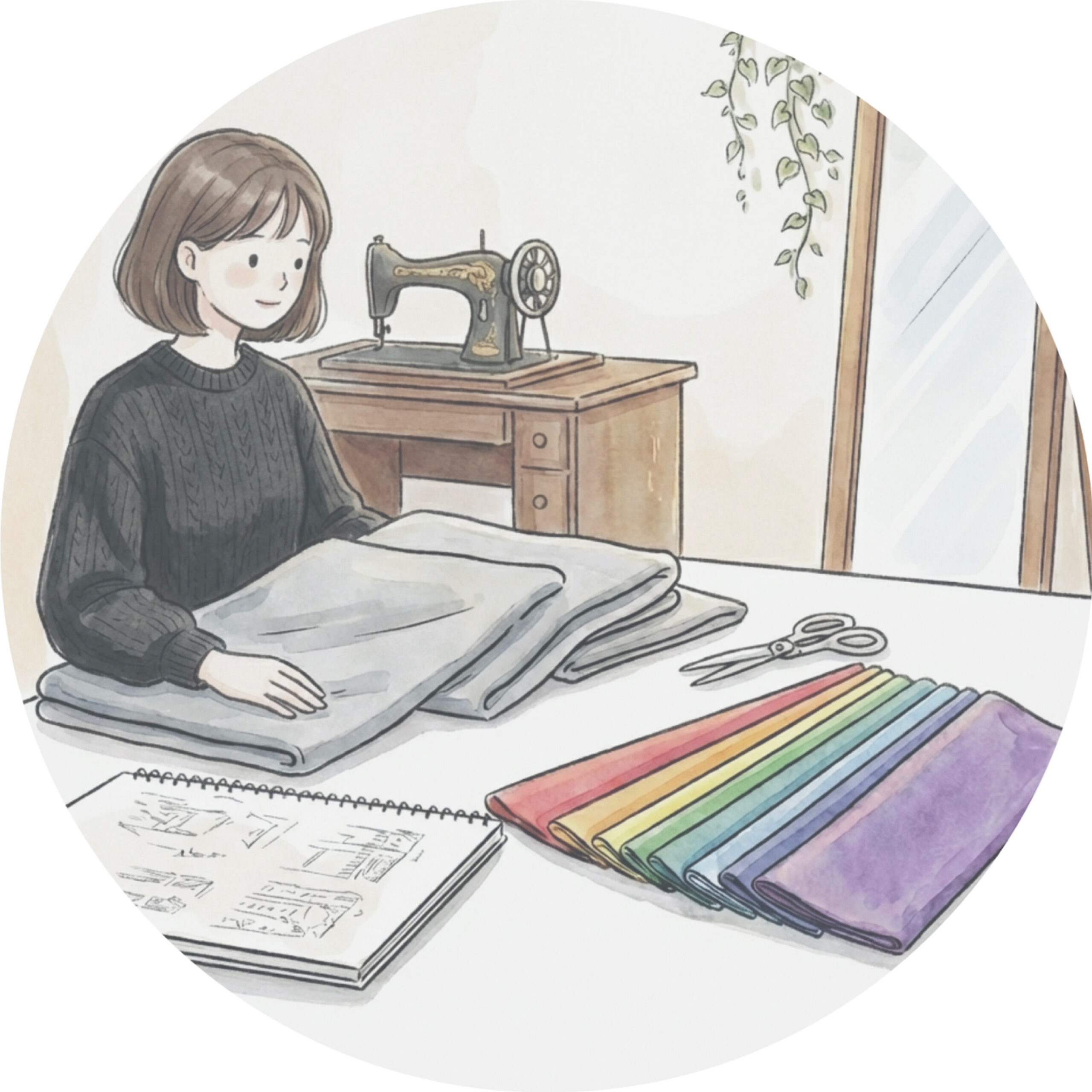 診断で分かった「あなたにぴったりの色」をもとに、 小物やインテリアまでトータルでご提案するのが tyckaならではの特徴です。 「この色で作りたい」というオーダー相談も大歓迎です。 ミシン部屋につながるアトリエ空間では 作品も展示していますので、 ぜひ実際に手に取って、ゆっくりご覧ください。